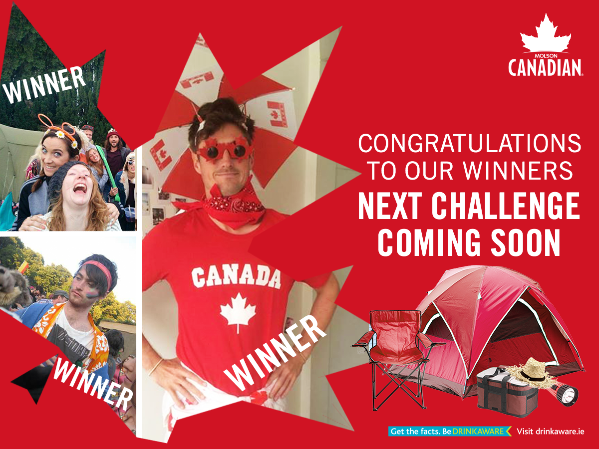 Liam Byrne, Elizabeth Shaw and Conor Dunphy all look the part for festival season, so they’ve each won a Festival Survival Kit for their #BeMoreCanadian Challenge entries! Thanks to everyone who entered – you’re all in our Grand Prize Toronto trip draw. Next challenge coming soon! www.drinkaware.ie