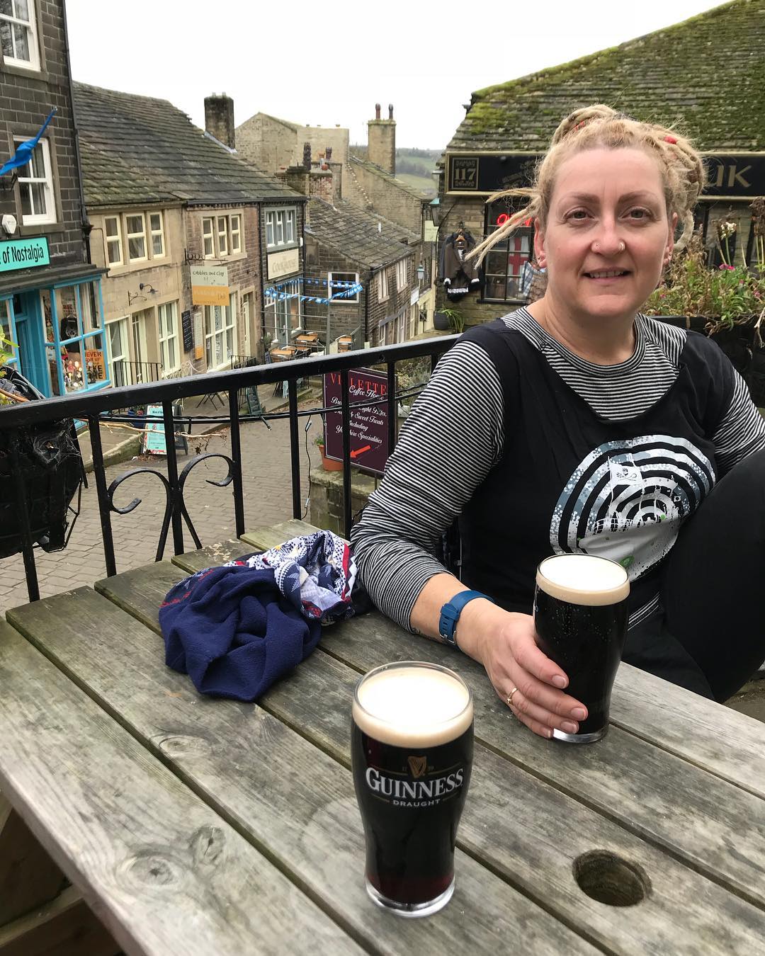 Posted on November 1, 2017Darren (@darrenhaigh) • Alcohol a psychoactive drug darrenhaighNice pint of Guinness with @hippy_earth_lovin_vegan after a nice 8 mike walk in Howarth. #howarth #howarthwalks #walks #brontewaterfalls #brontë #guinness