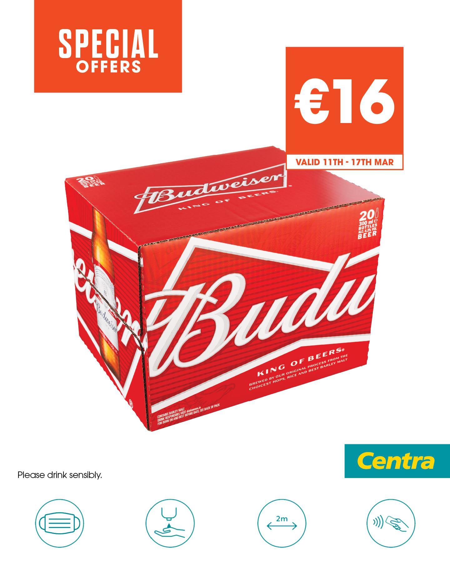Budweiser Bottle Box 20 x 300ml was €18 now €16