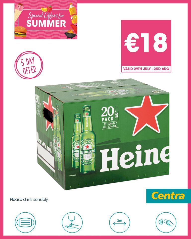 Heineken Bottle Pack 20 x 330ml – €2.73/ltr