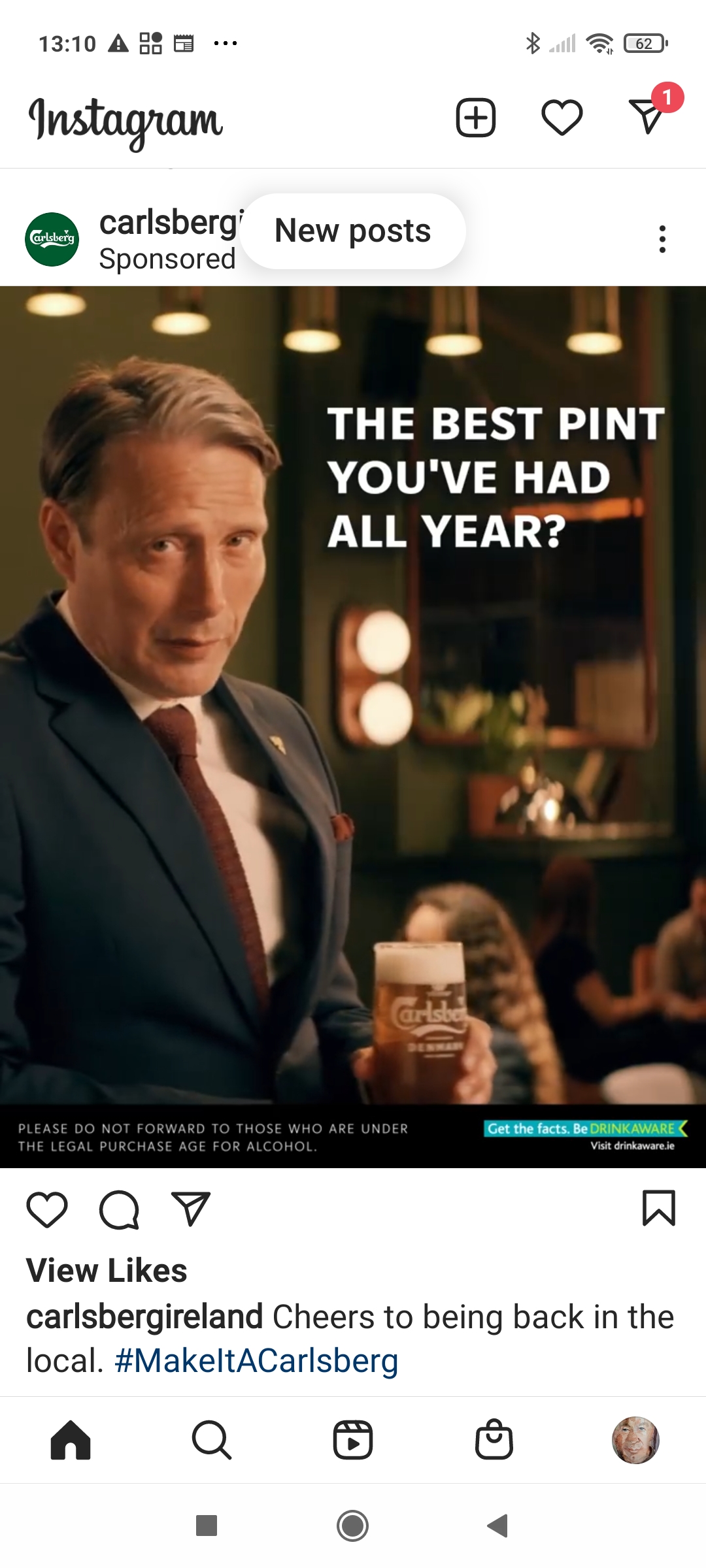 Mads Mikkelesen drinks Carlsberg alcohol#drinkawaste