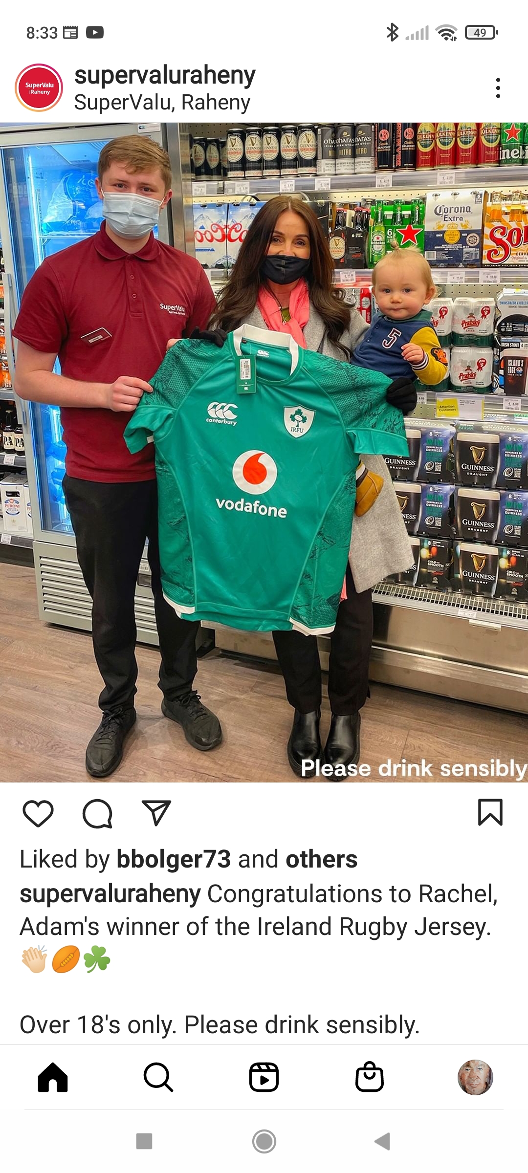Ireland ranks sixth worldwide in the average consumption of beer per person.