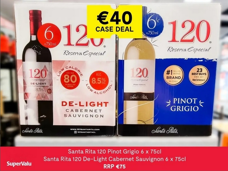 Santa Rita 120 Pinot Grigio/De-Light Cabernet Sauvignon 6pk only €40!