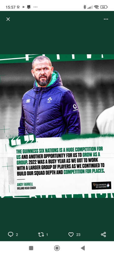 Posted on February 27, 2022Guinness Says – Andy Farrell speaks… Guinness Six Nations@SixNationsRugby·18mAndy Farrell speaks post #IREvITA! #GuinnessSixNations