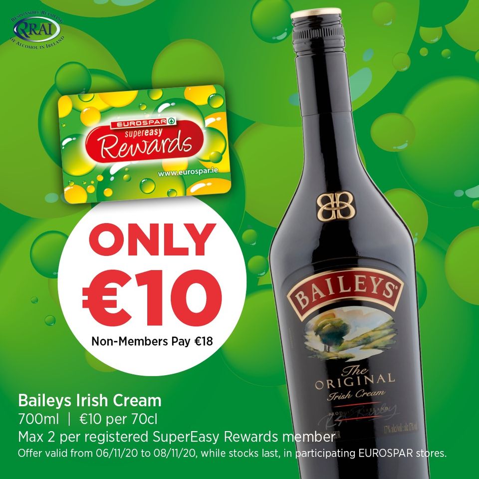 Baileys Original Irish Cream now only €10 this weekend for SuperEasy Reward Members only! 😍 Maximum 2 bottles per member.